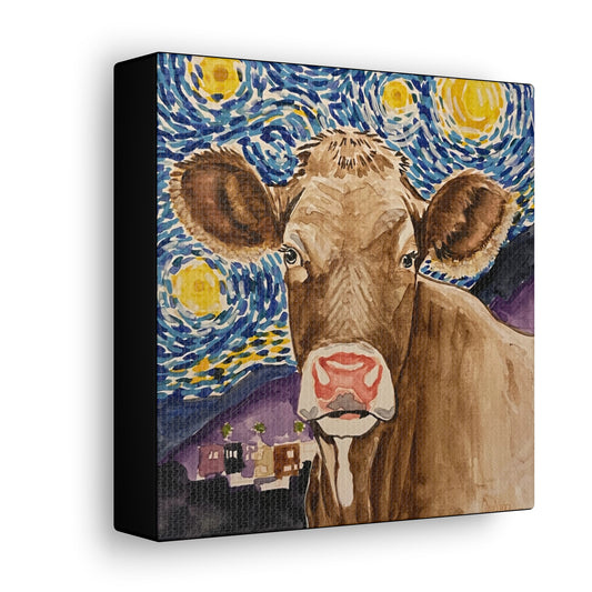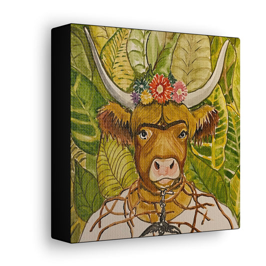 Art: Freida COW-lo Canvas Gallery Wrap - Floral Decor for Art and Cow Lovers