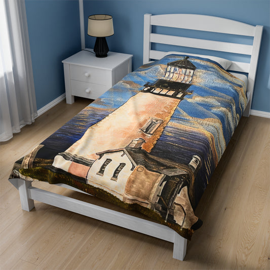 Blanket: Yaquina Head Lighthouse Velveteen Plush Blanket