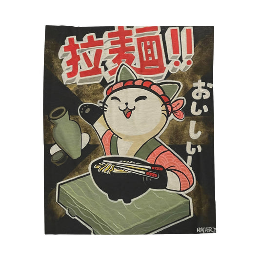 Blanket: Ramen Kitty Velveteen Plush Blanket
