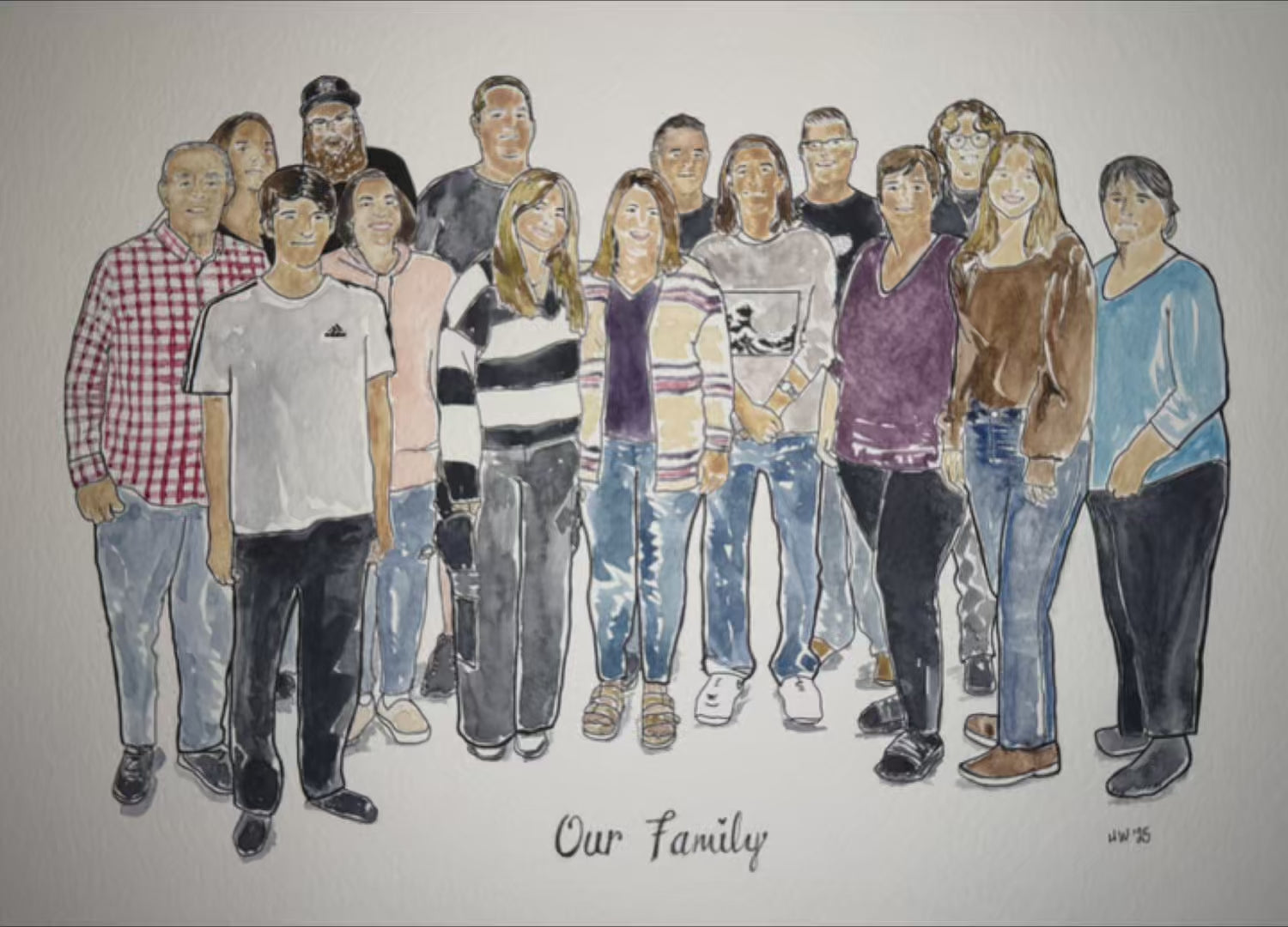 A Hand Drawn Family Watercolor Portrait